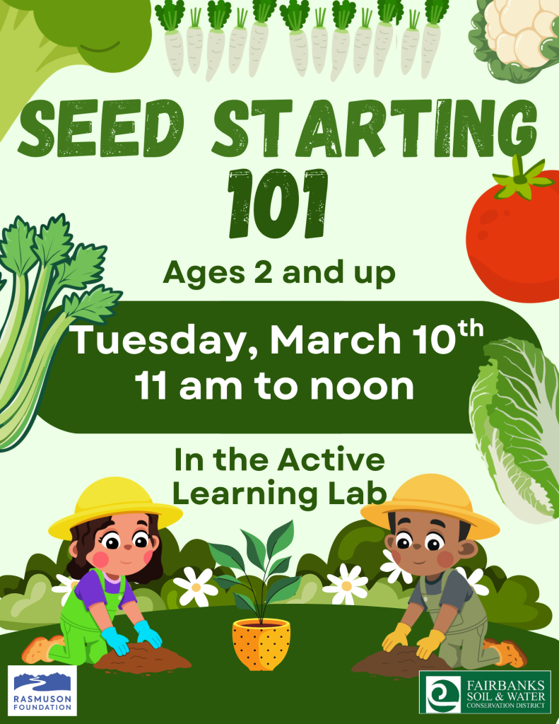 FSWCD Staff Mel Sikes will be at the Noel Wien Library on Tuesday March 10th from 11-12pm to help children and families experience the joy of planting seeds, transplanting seedlings, and making a fun plant craft.